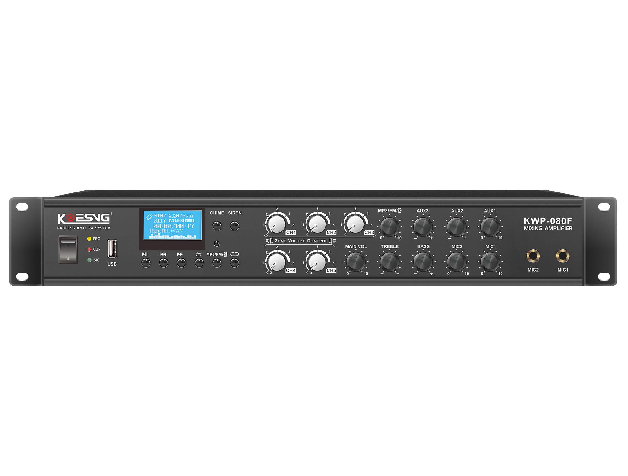 KWP-080F系列 带MP3、调谐器、显示屏、五分区合并式功
